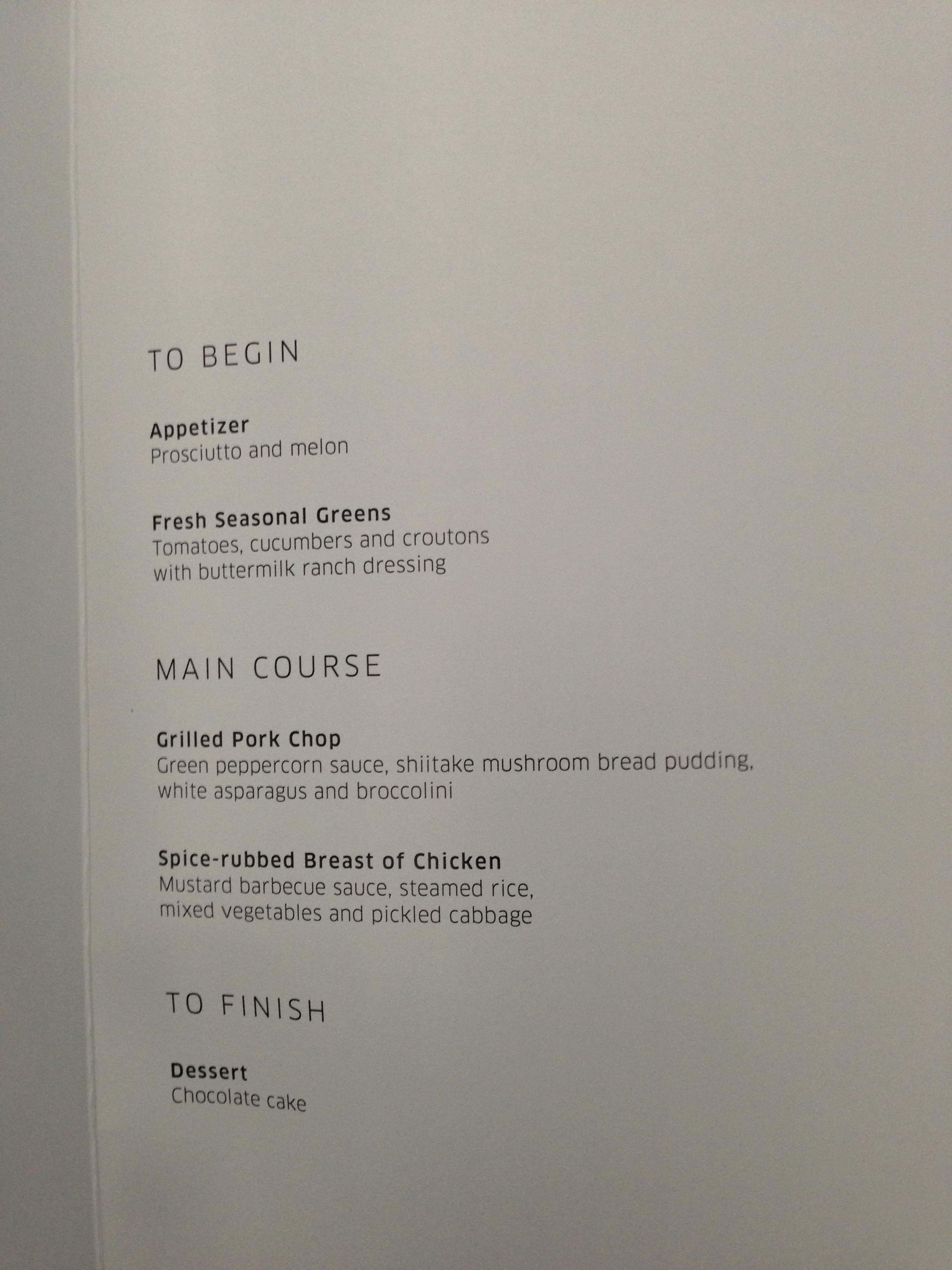 We had our own special menu. From what everyone said, the food quality was pretty darn good for domestic airplane food. I ended up serving food the entire flight, so I didn’t really get the chance to enjoy a meal. Although I don’t have any pictures of the crowds, as soon as meal service was over our group turned the plane into a cocktail lounge at 38,000 feet, clogging the aisles and enjoying a drink with friends. As many MegaDOs as I’ve participated in, it’s still one of the most bizarre things to see.