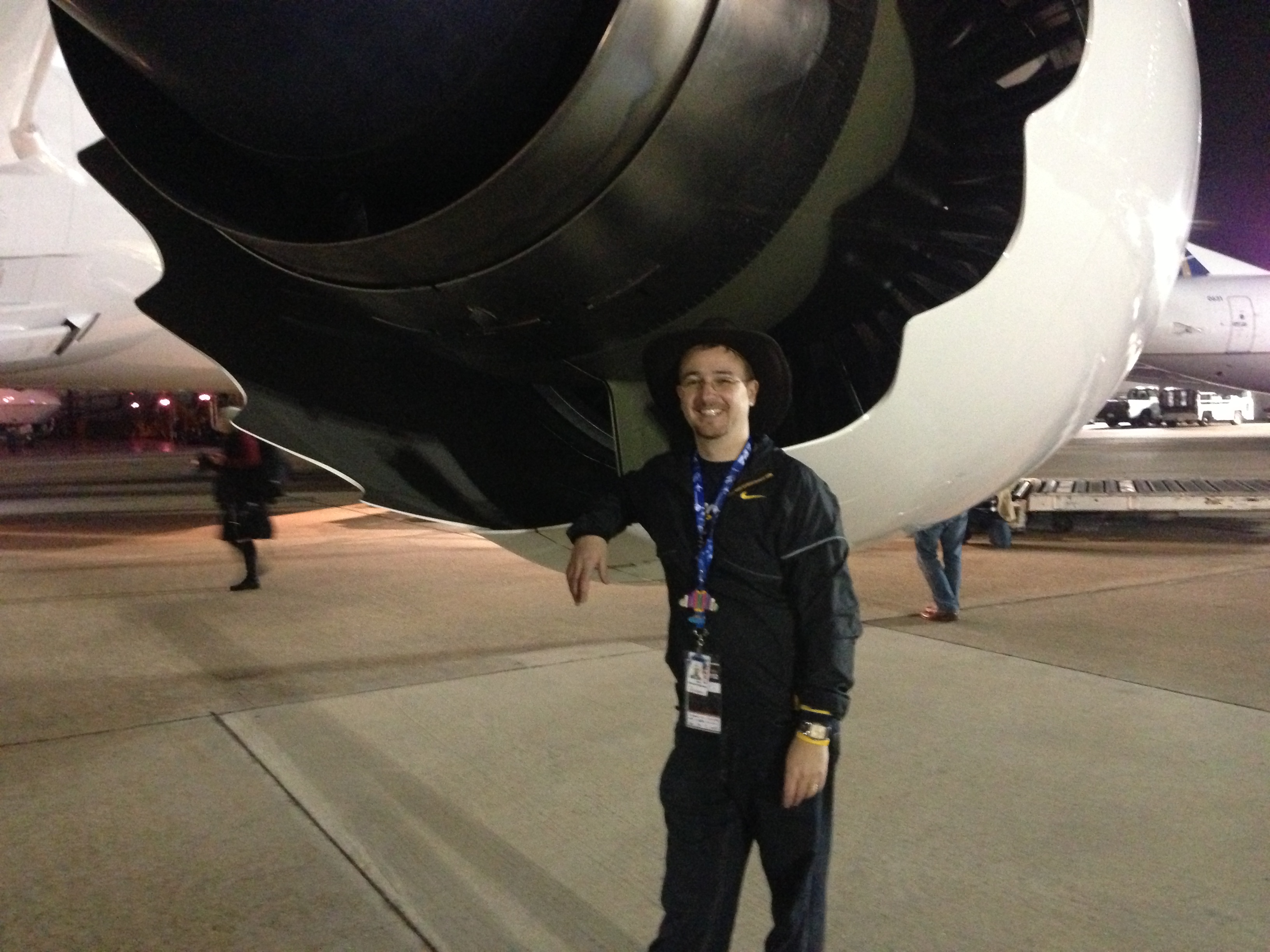 We were headed to Houston for a BBQ in a hangar and some time to explore the 787 from the outside. A BBQ on the tarmac is a pretty cool way for an airplane geek to hang out for the evening. Upon landing, we had some time to crawl around the outside of the 787. That yielded some pretty awesome pictures, unlikely to get shots of the 787 quite like these again. It was great to enjoy some unique time with close friends. I mean, who wouldn’t get a kick out of taking a picture with a friend in front of a still warm airplane engine?